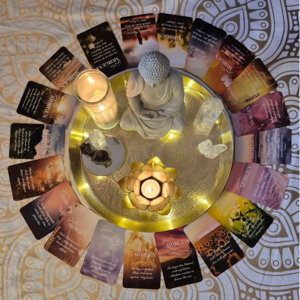 Stell dir vor, wie du am Morgen deine Tasse Tee in den Händen hältst, in Stille atmest – und dann eine Karte ziehst. Der Moment ist ganz dir gewidmet. Die Botschaft, die du erhältst, öffnet dein Herz, richtet deinen Fokus neu aus und lässt deine Gedanken in eine lichtvolle Richtung fließen. So wird jeder Morgen zu einem kleinen, heilsamen Ritual – ein Anker aus Licht im Trubel des Alltags.