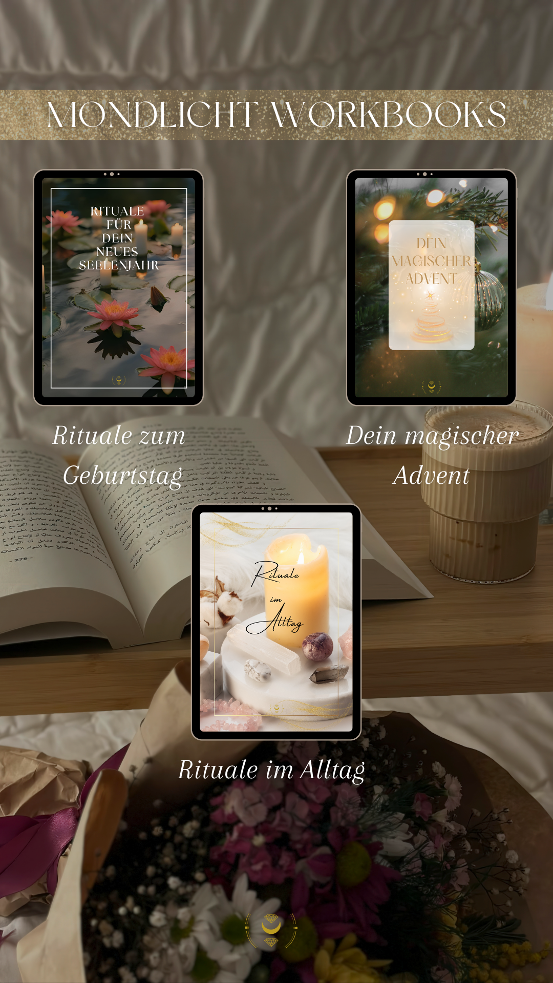 Ein über 56- seitiges E-Book als PDF Dokument mit über 20 Ritualen und Impulsen zu deinem Geburtstag inkl. 4 Audiomeditationen: